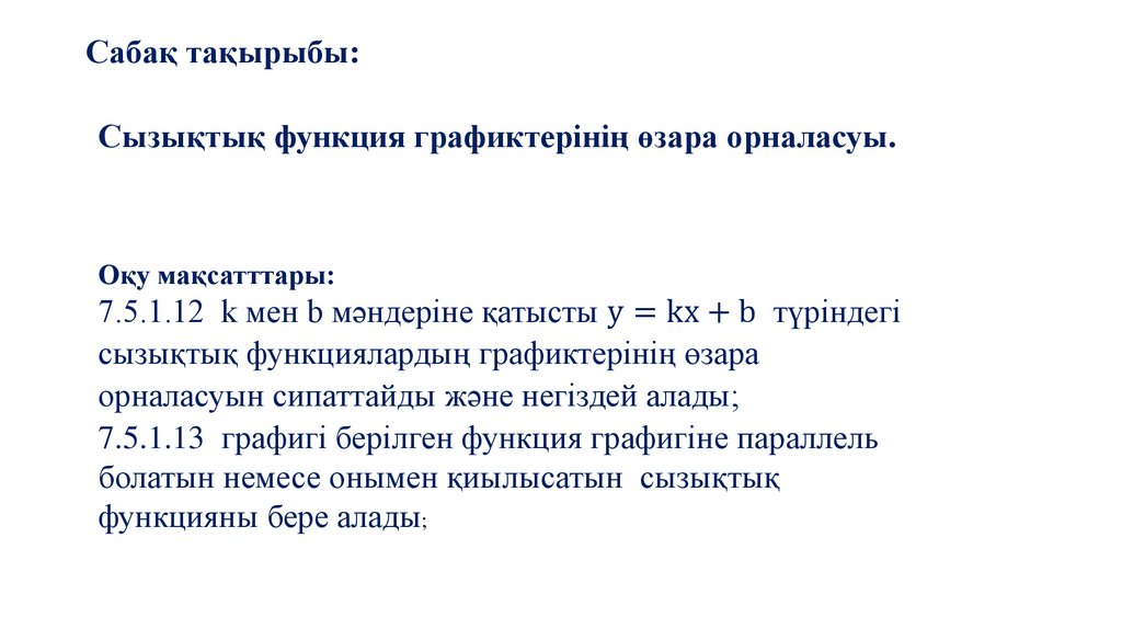 7.5.1.12 k мен b мәндеріне қатысты y = kx + b түріндегі