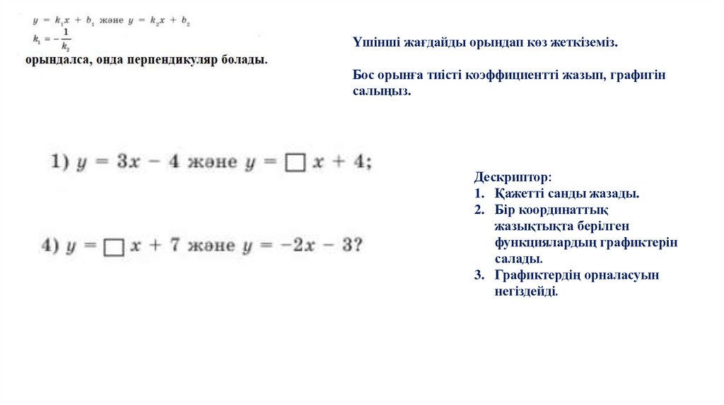• Берілген графикке параллель немесе қиылысатын түзудің