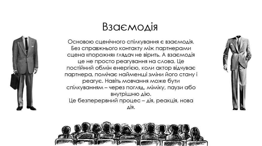 ВзаємодіяОсновою сценічного спілкування є взаємодія.
