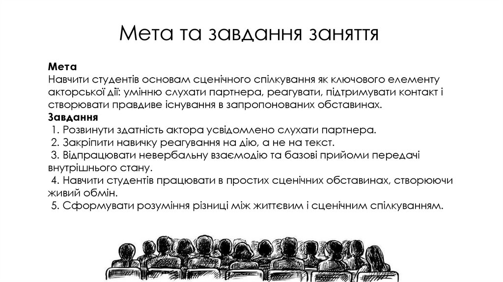 Навчити студентів основам сценічного спілкування як ключового елементу