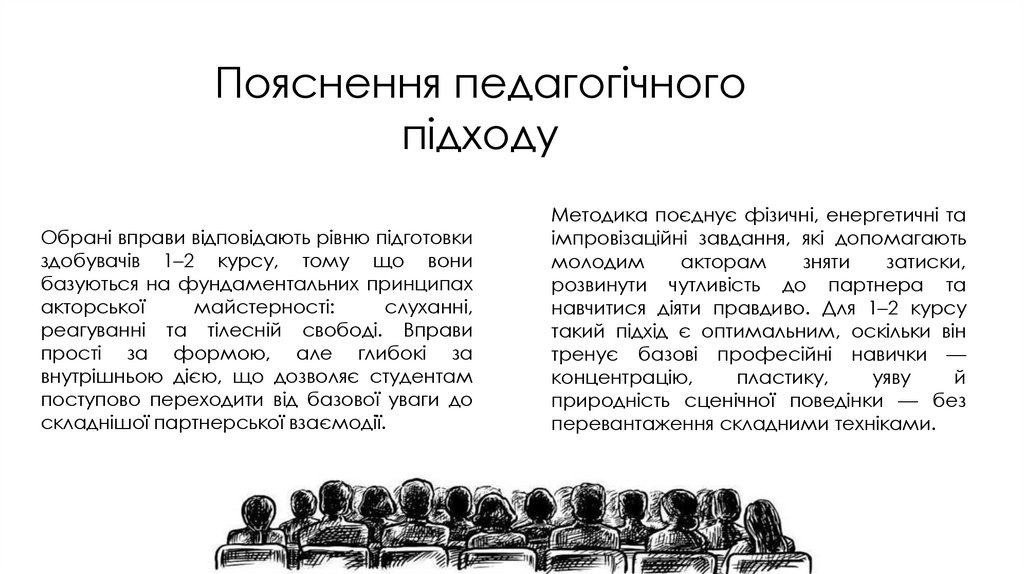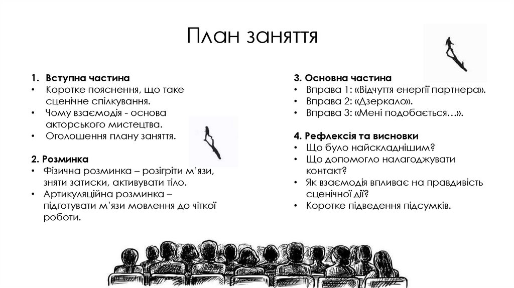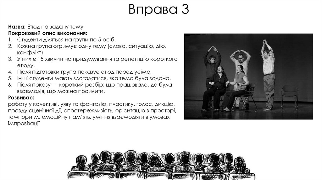 4. Навчити студентів працювати в простих сценічних обставинах, створюючи