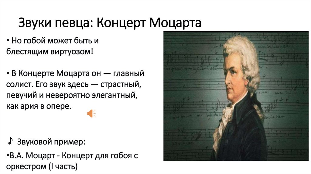 Звуки певца: Концерт Моцарта• Но гобой может быть и