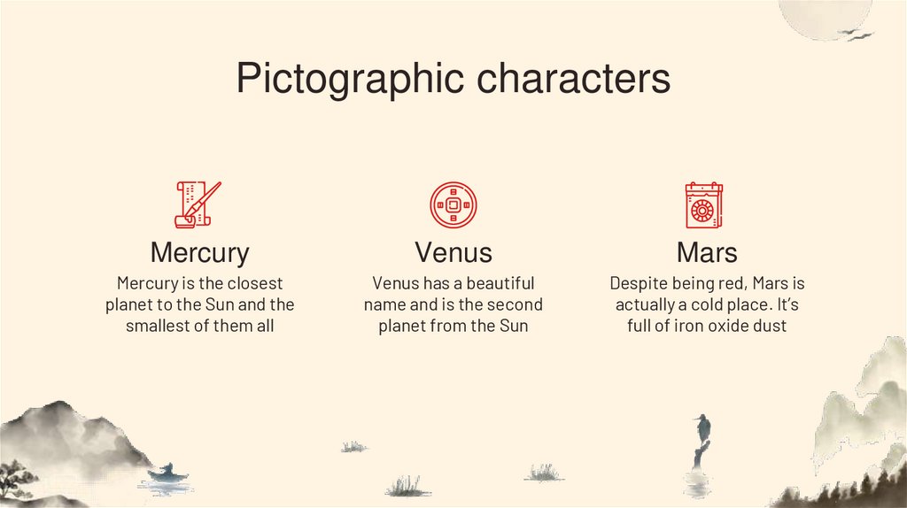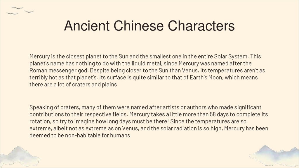 Ancient Chinese CharactersMercury is the closest planet to the Sun and the smallest one in the entire Solar System. This
