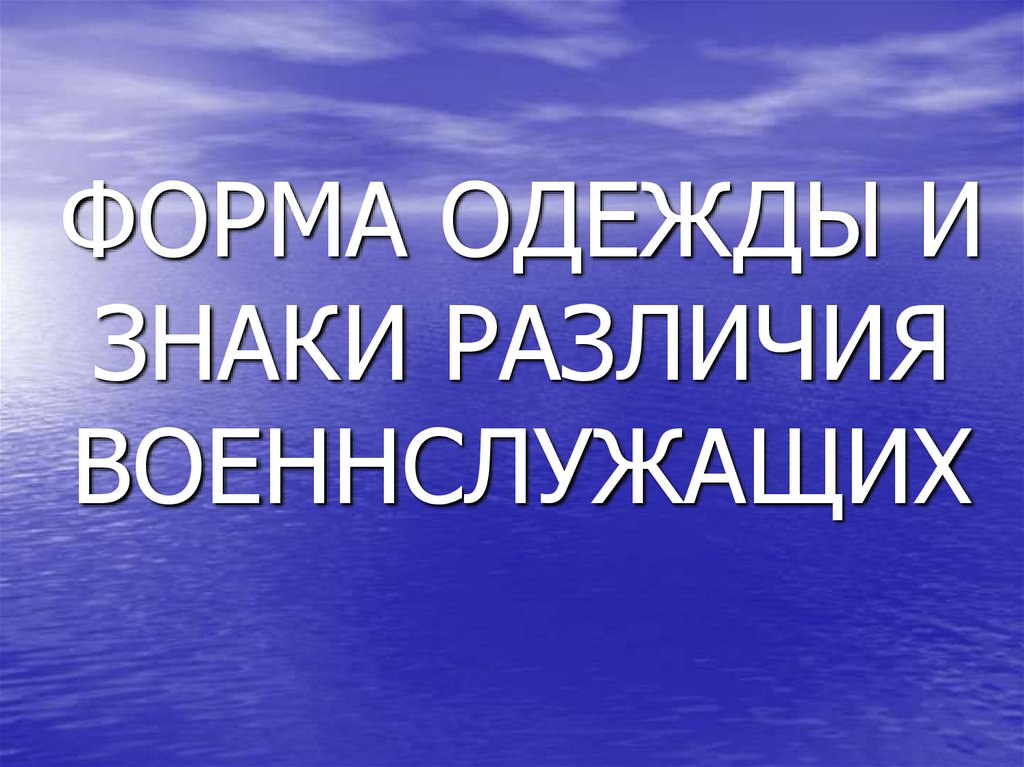 1. ФОРМА ОДЕЖДЫ И ЗНАКИ РАЗЛИЧИЯ ВОЕННСЛУЖАЩИХ