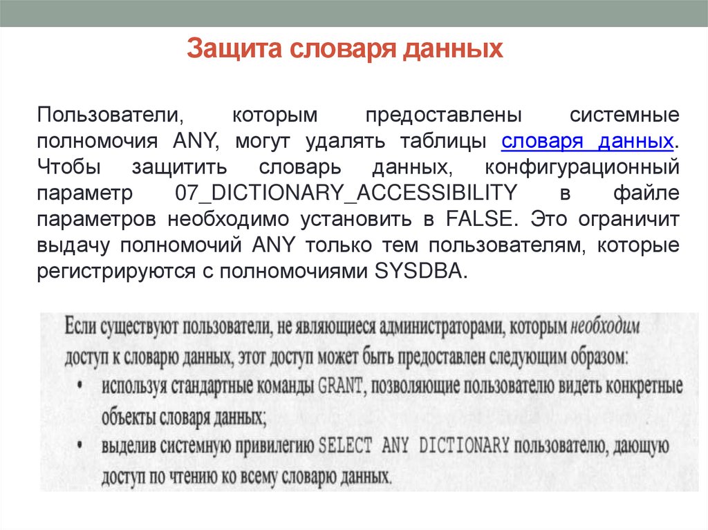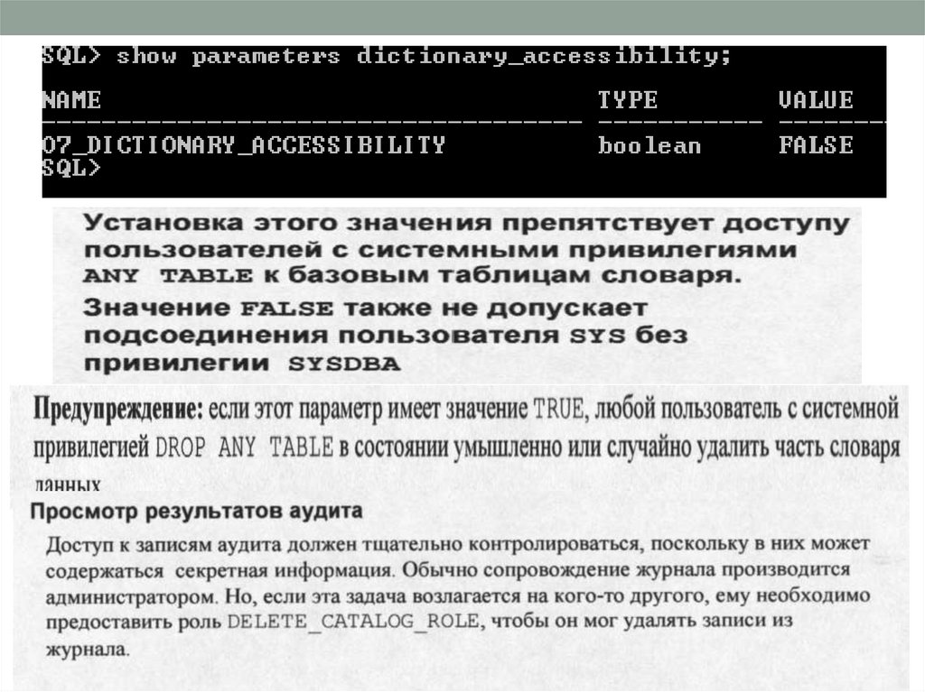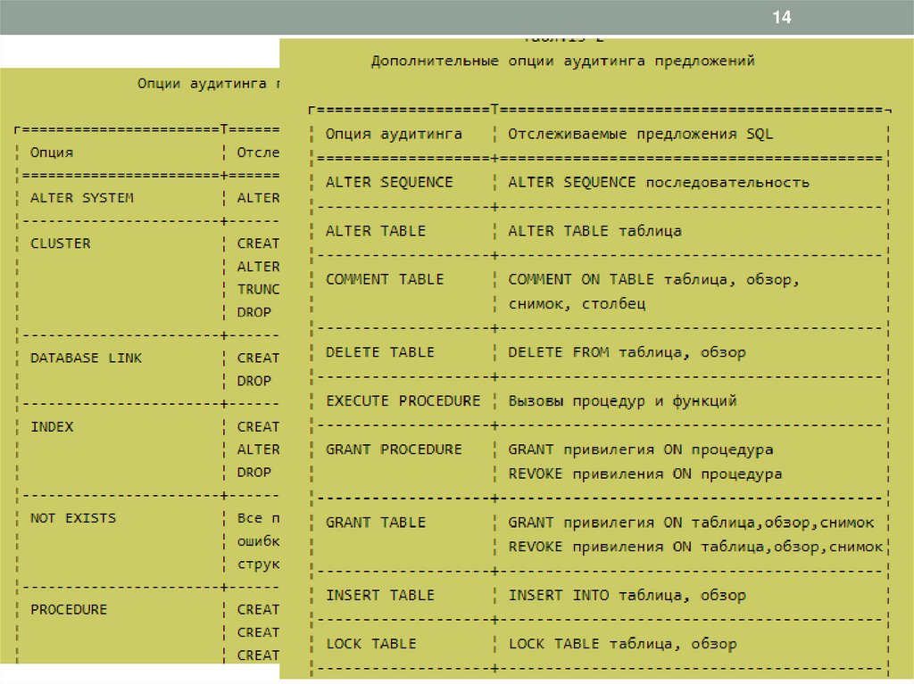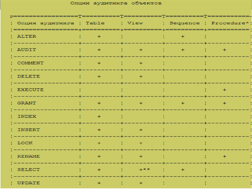 • Аудит - способ отслеживания использования БД ипредупреждения