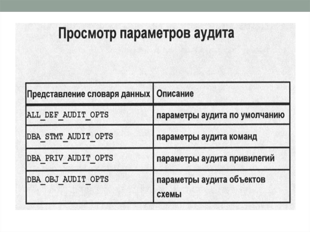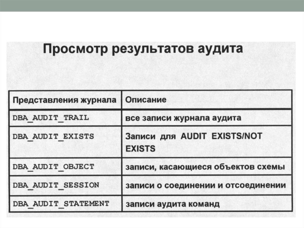 • Аудит использования БД позволяет убедиться,