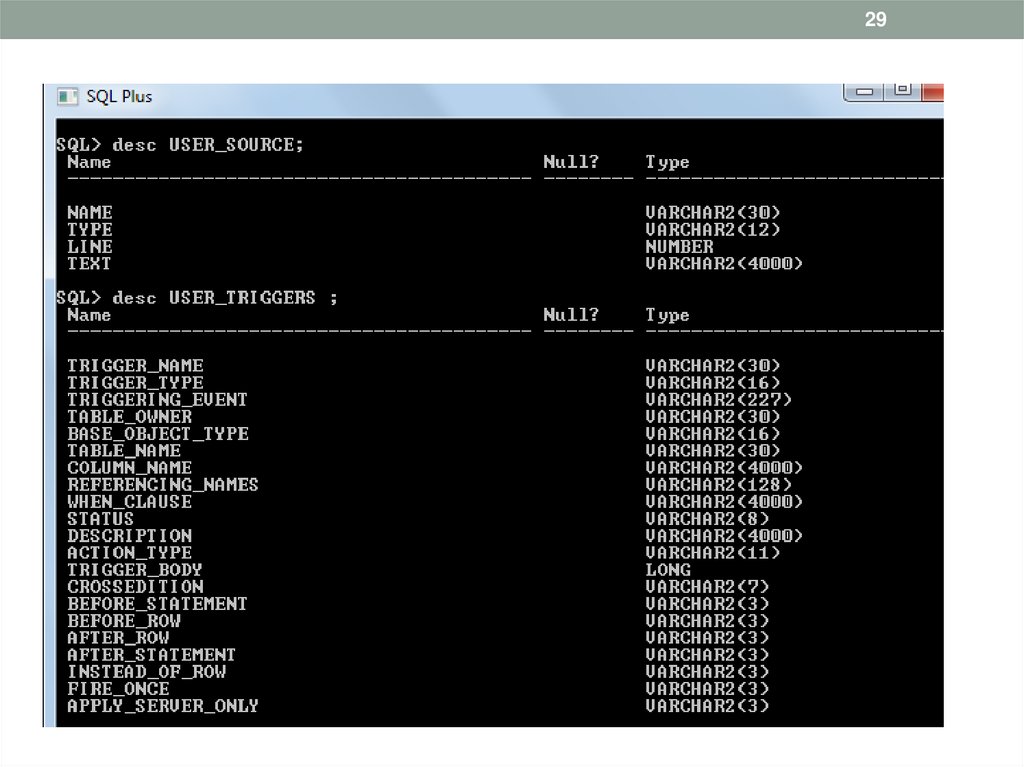 • Data Definition Language (DDL) может эксплуатироваться,