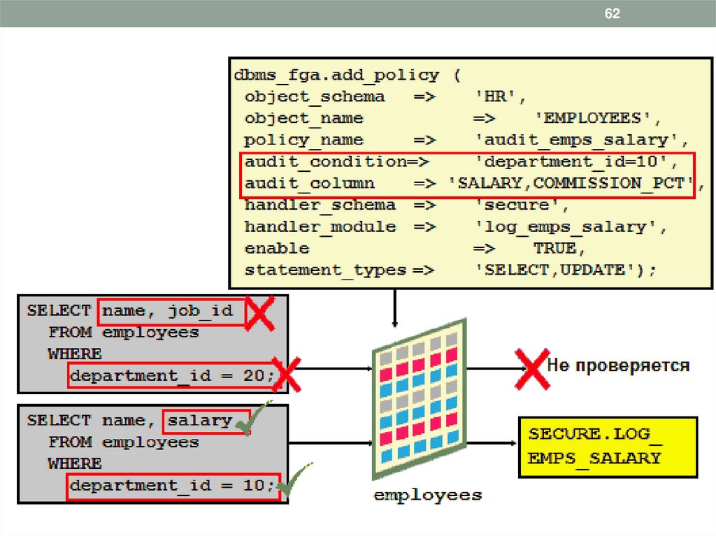 • Для активизации FGA на уровне базы данных необходимо