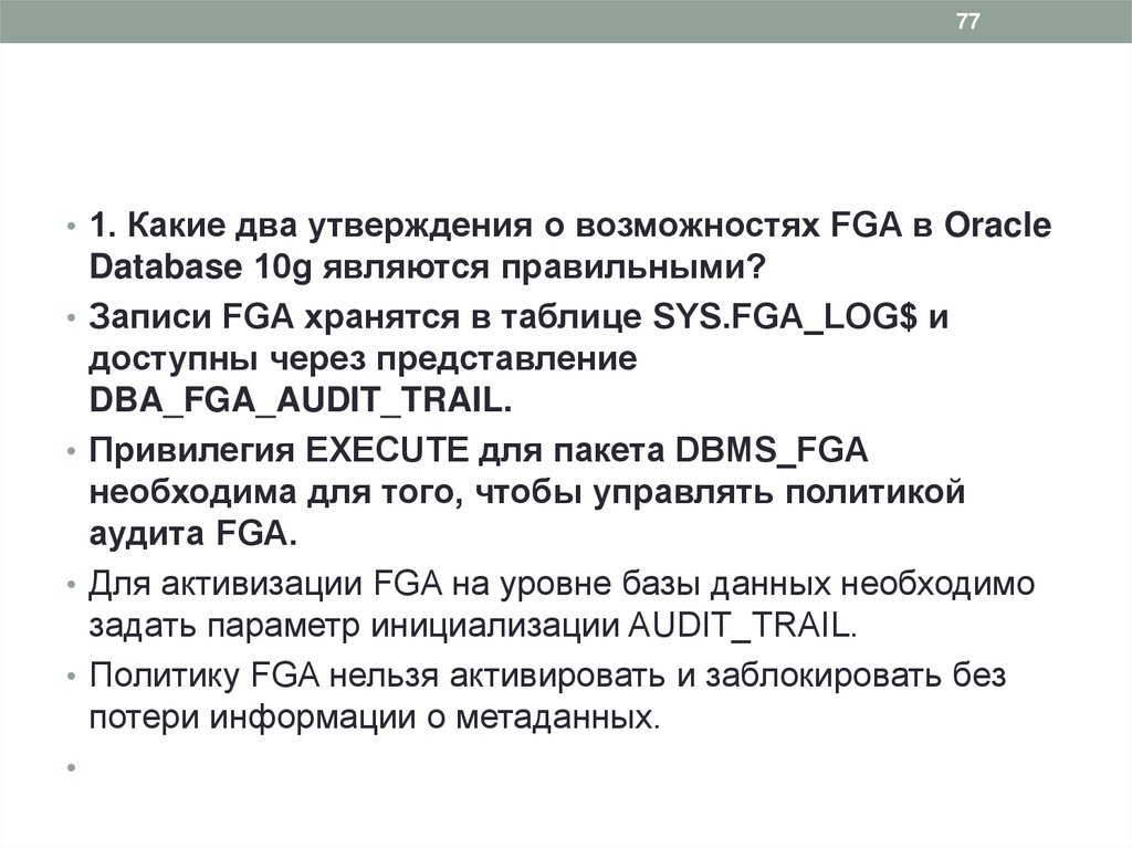 77• 1. Какие два утверждения о возможностях FGA в Oracle