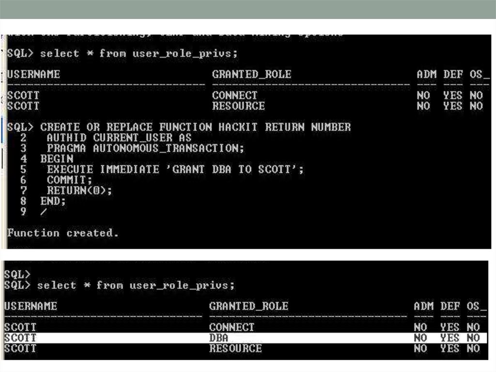 EXECUTE IMMEDIATE 'GRANT DBA TO SCOTT ';
