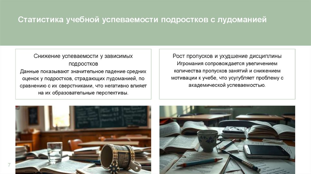Статистика учебной успеваемости подростков с лудоманиейСнижение успеваемости у зависимых