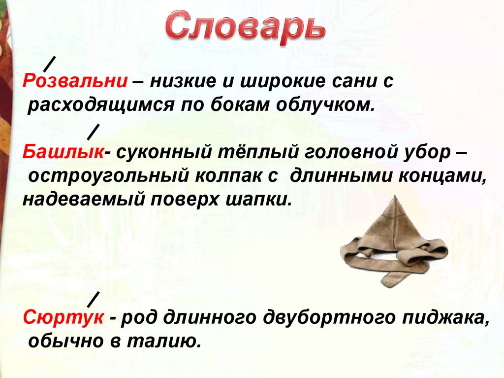 Башлык- суконный тёплый головной убор –