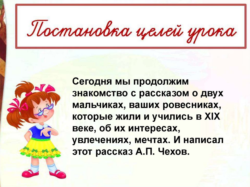 Презентация по литературному чтению на тему _А. П. Чехов Мальчики_ (4 класс) Школа России