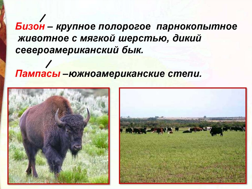 Бизон – крупное полорогое парнокопытноеживотное с мягкой шерстью, дикий