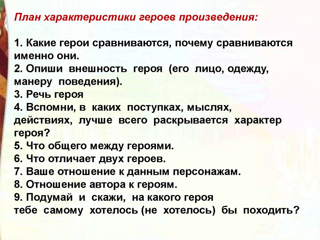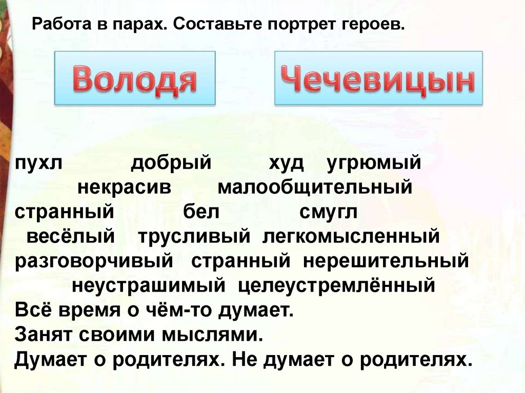 Работа в парах. Составьте портрет героев.пухл