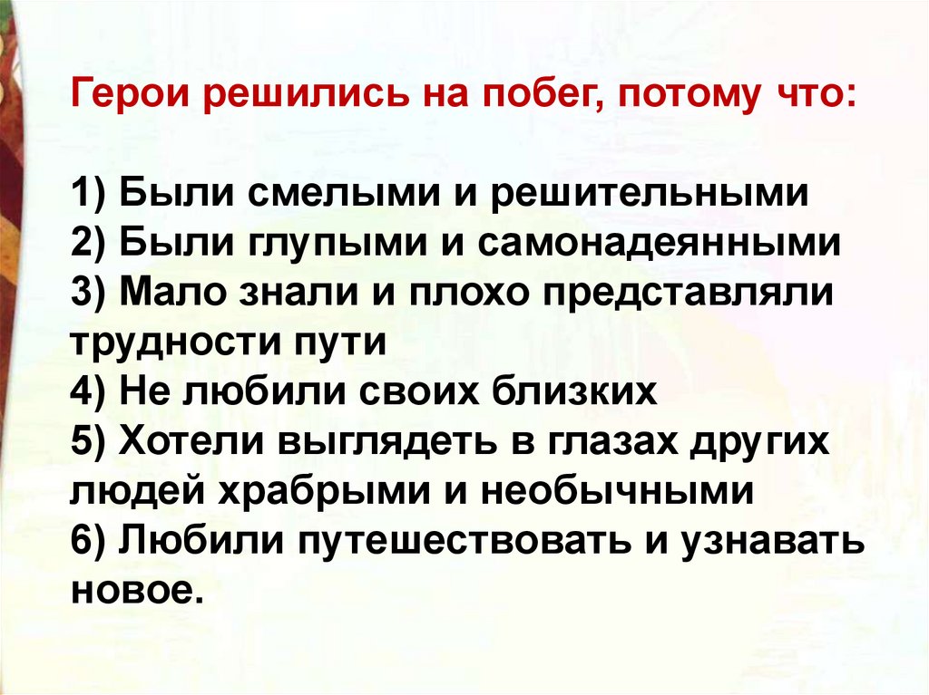 Герои решились на побег, потому что:1) Были смелыми и решительными