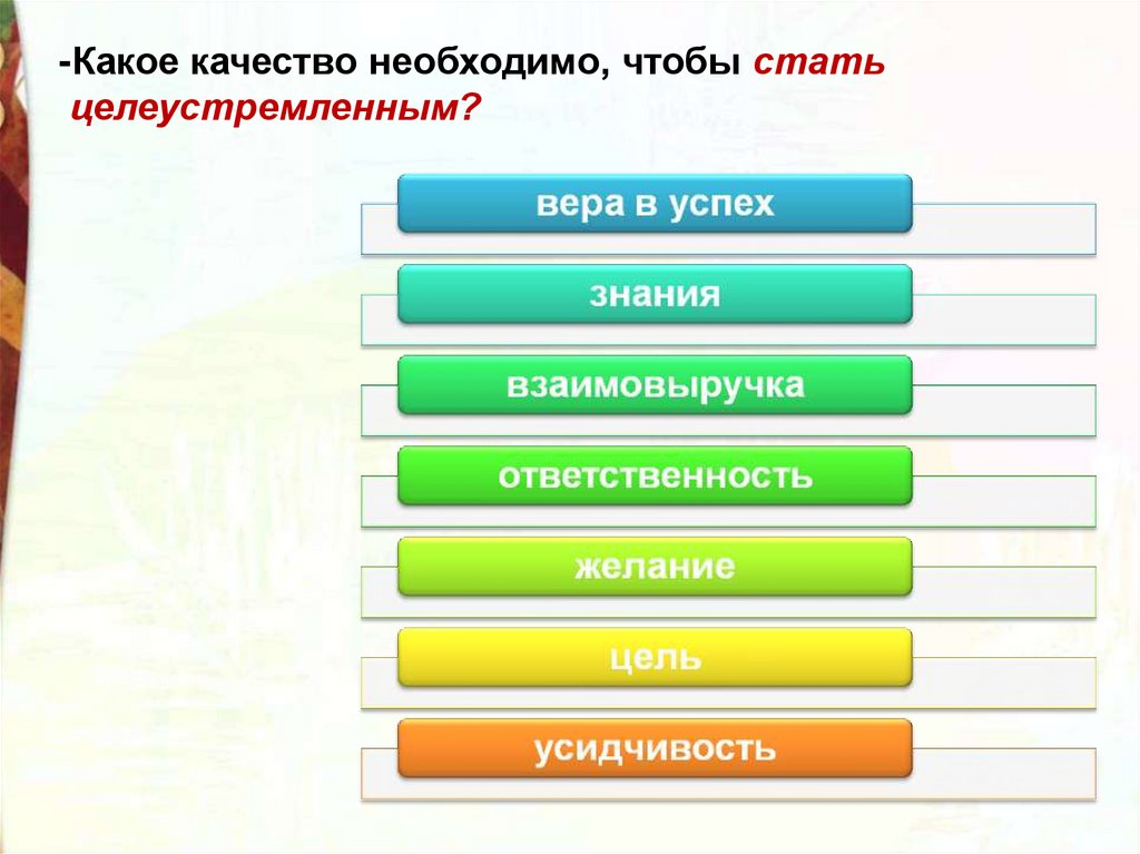 -Какое качество необходимо, чтобы статьцелеустремленным?