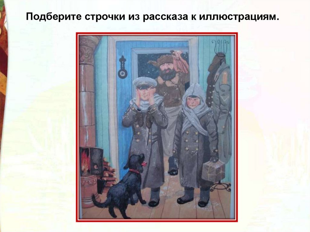 Подберите строчки из рассказа к иллюстрациям.44.