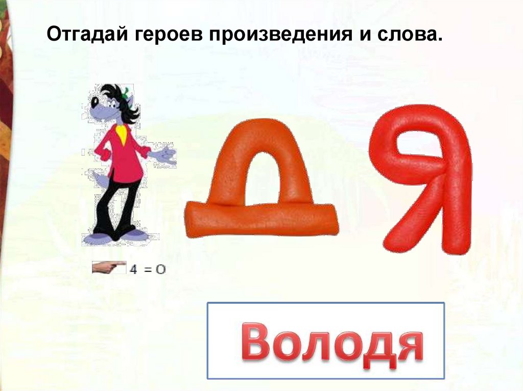 Отгадай героев произведения и слова.49.