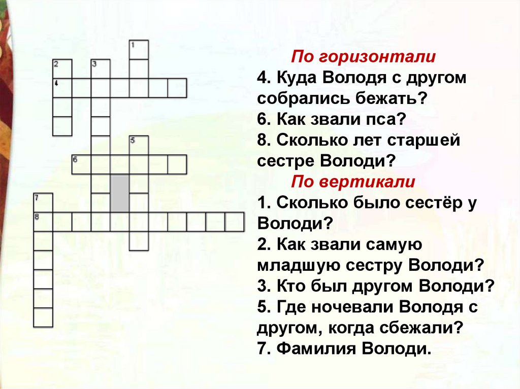 По горизонтали4. Куда Володя с другом