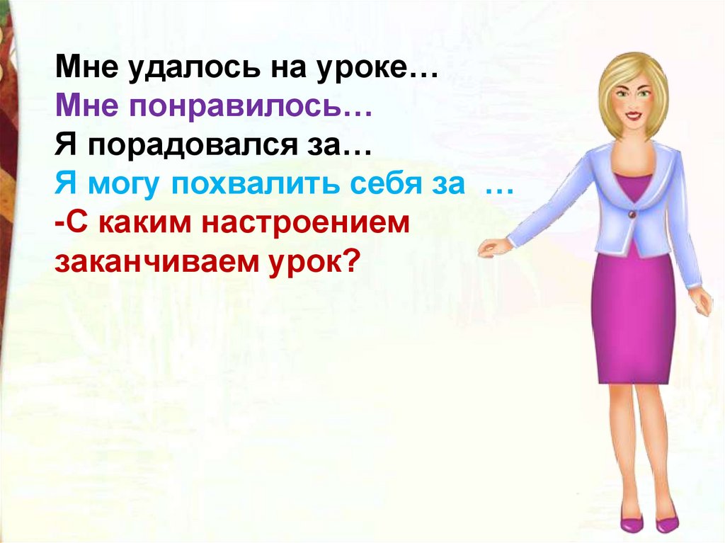 Мне удалось на уроке…Мне понравилось…