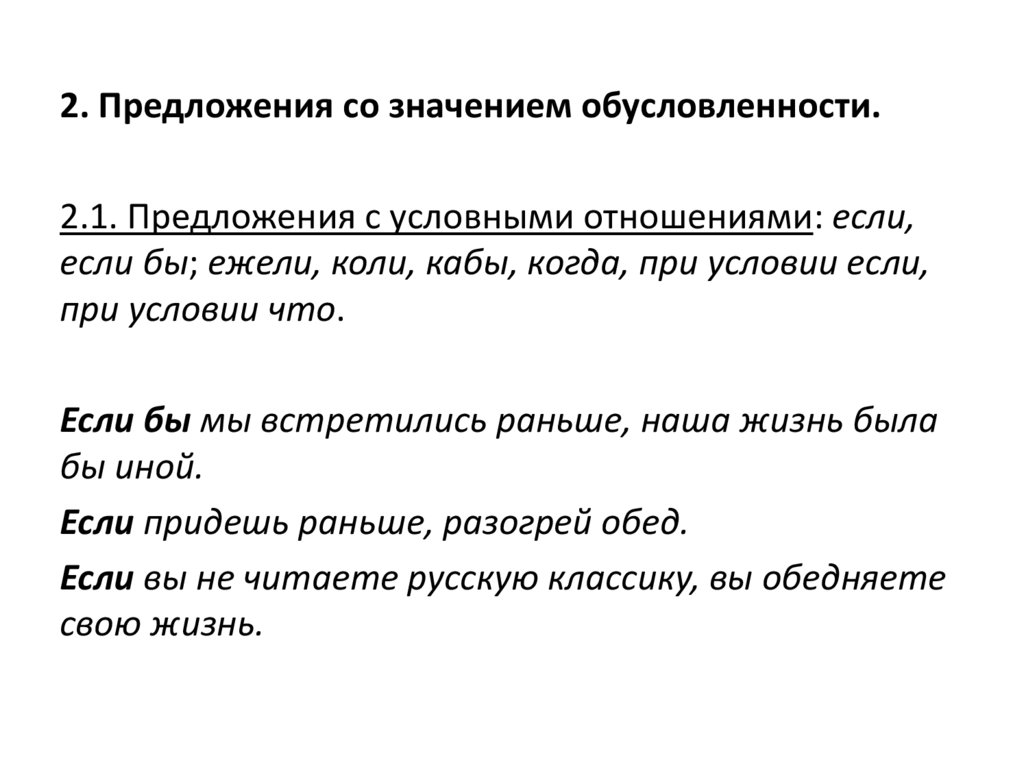 2. Предложения со значением обусловленности.2.1. Предложения с условными отношениями: если,