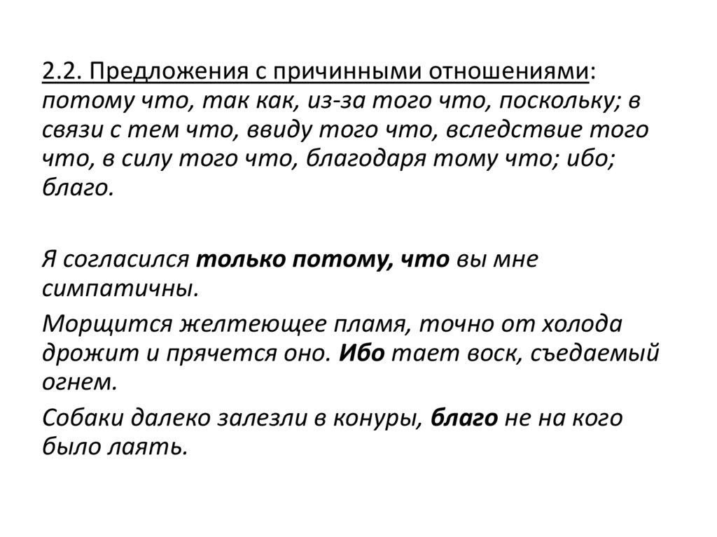 2.2. Предложения с причинными отношениями:потому что, так как, из-за того что, поскольку; в