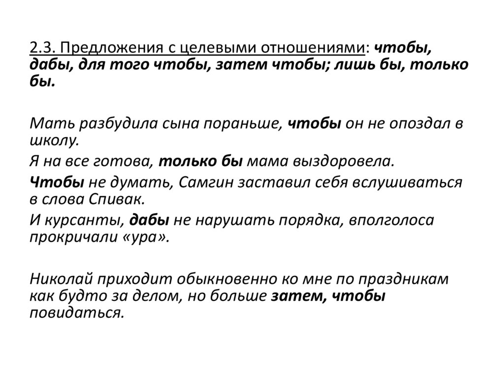 2.3. Предложения с целевыми отношениями: чтобы,дабы, для того чтобы, затем чтобы; лишь бы, только