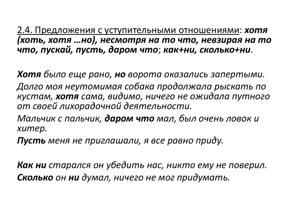 2.4. Предложения с уступительными отношениями: хотя(хоть, хотя …но), несмотря на то что, невзирая на то