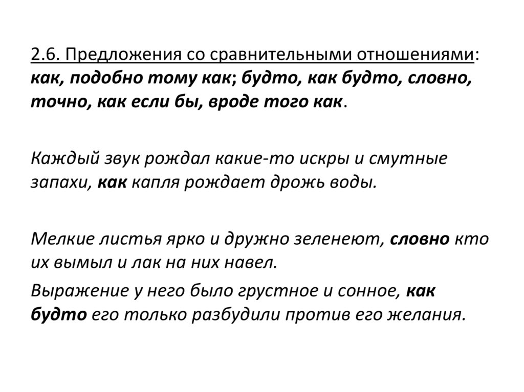 2.6. Предложения со сравнительными отношениями:как, подобно тому как; будто, как будто, словно,
