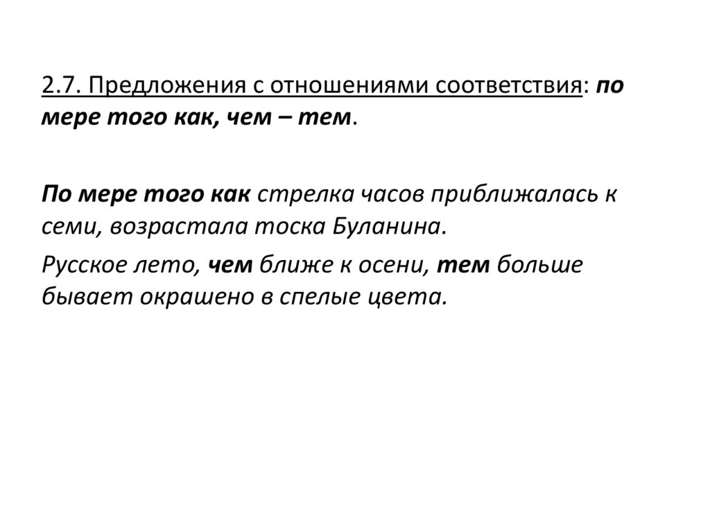 2.7. Предложения с отношениями соответствия: помере того как, чем – тем.