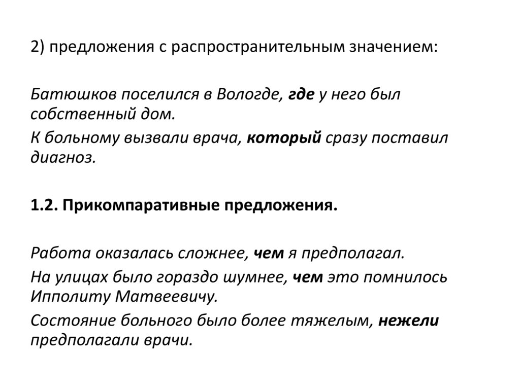 2) предложения с распространительным значением:Батюшков поселился в Вологде, где у него был