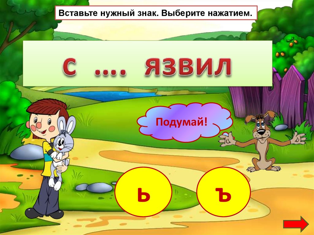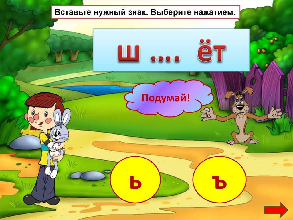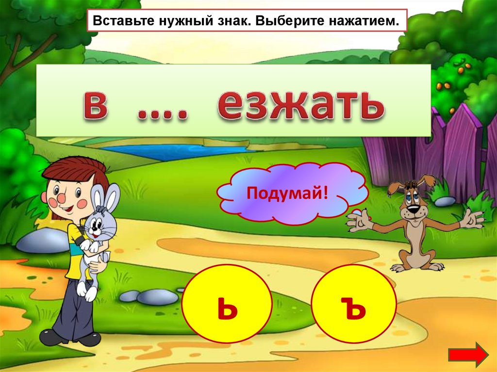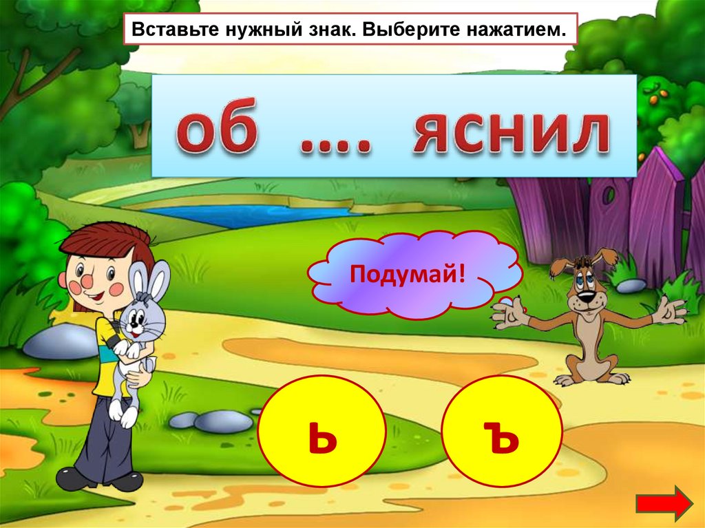 Вставьте нужный знак. Выберите нажатием.Подумай!