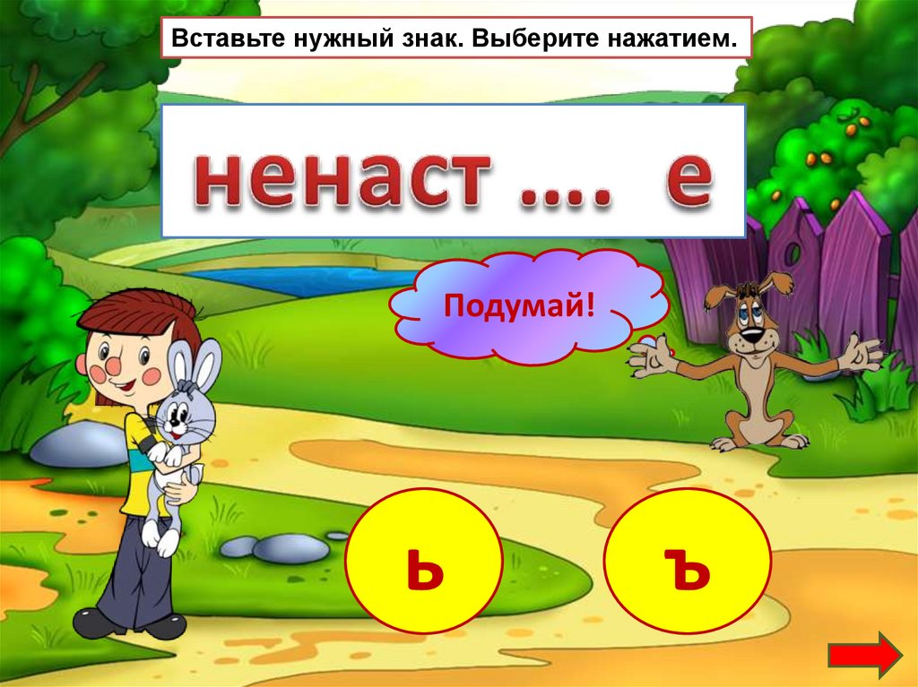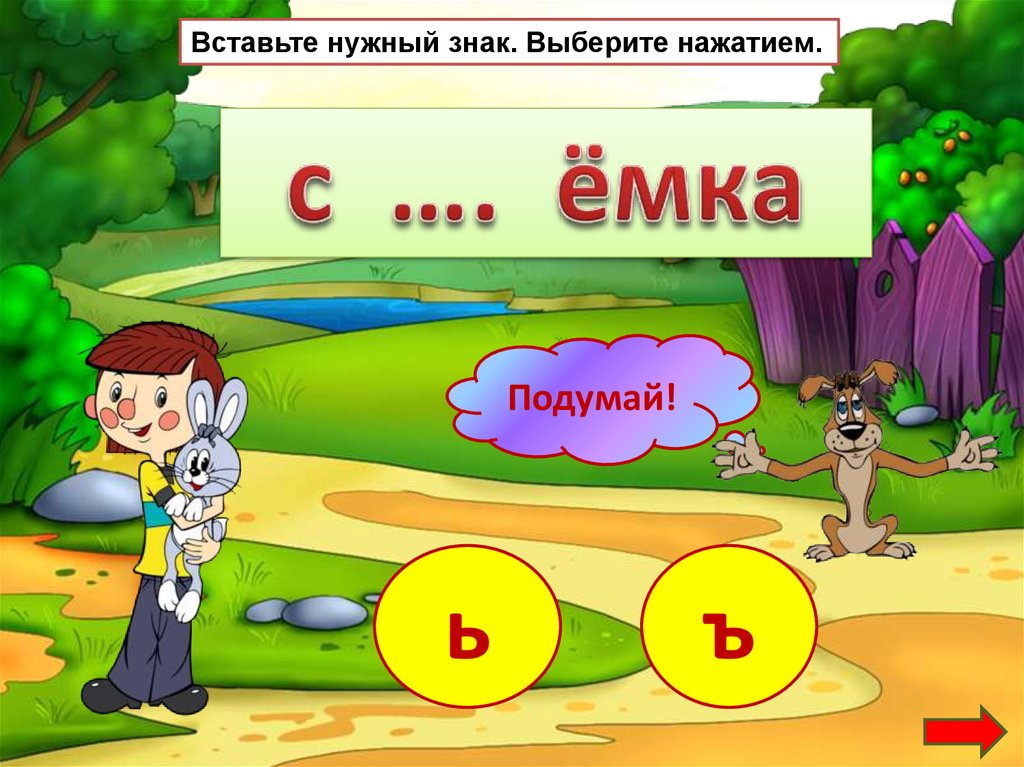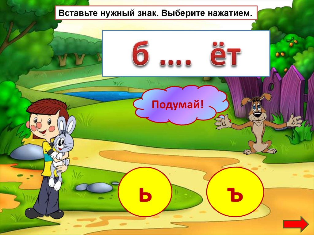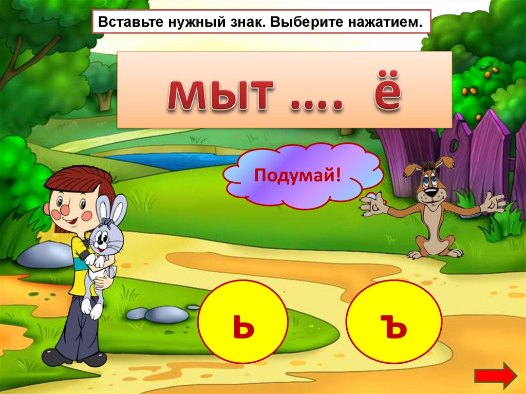 Вставьте нужный знак. Выберите нажатием.Подумай!
