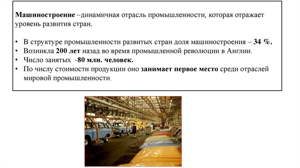 Машиностроение –динамичная отрасль промышленности, которая отражаетуровень развития стран.