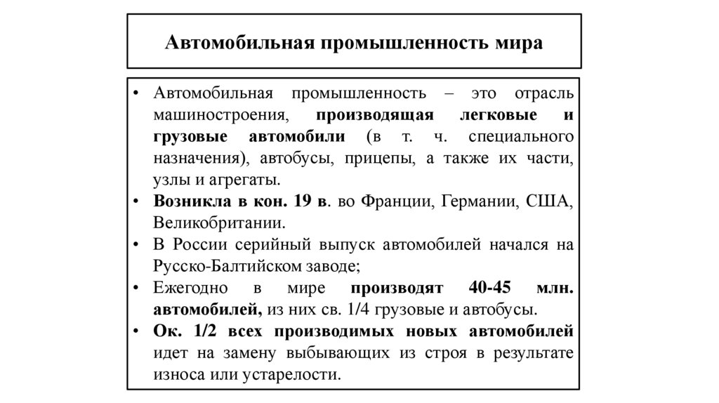 Автомобильная промышленность мира• Автомобильная промышленность – это отрасль