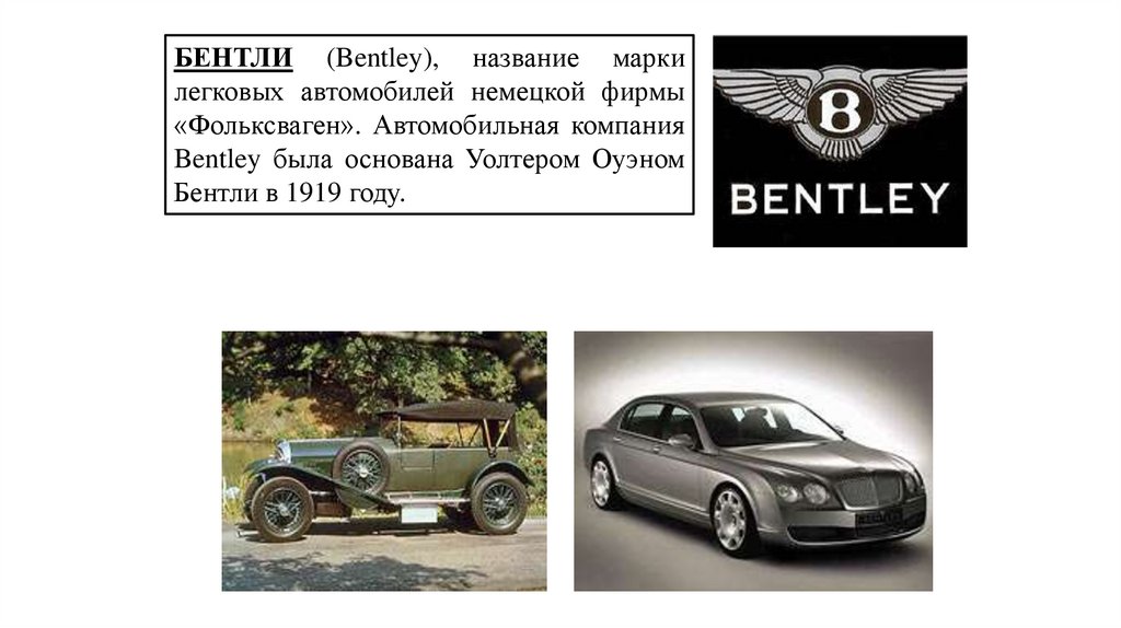 БЕНТЛИ (Bentley), название маркилегковых автомобилей немецкой фирмы