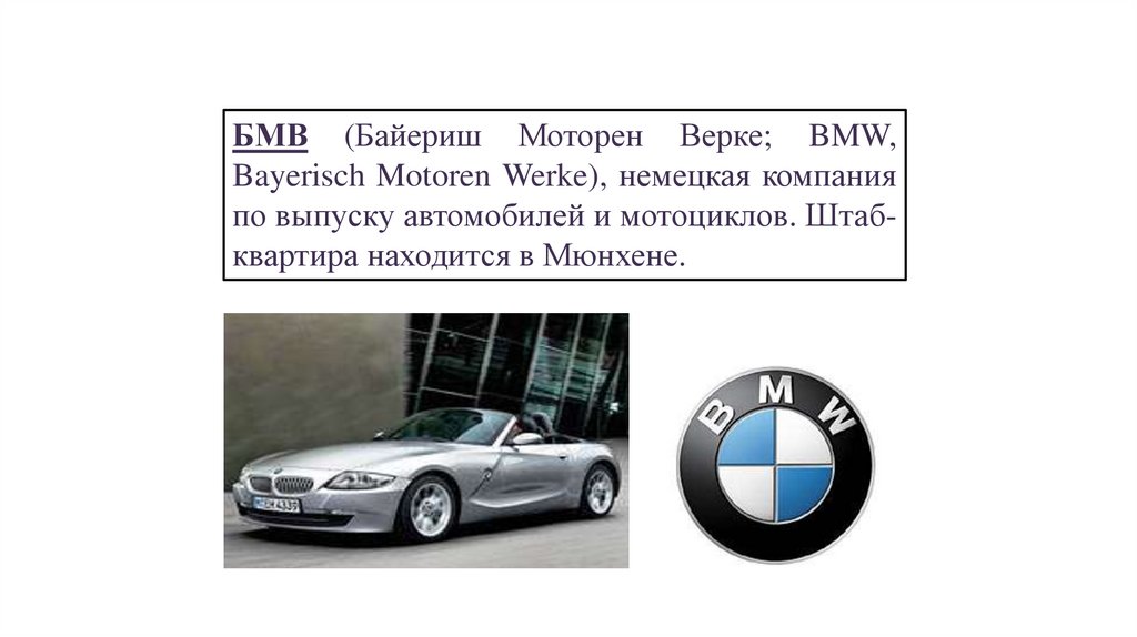 по выпуску автомобилей и мотоциклов. Штабквартира находится в Мюнхене.