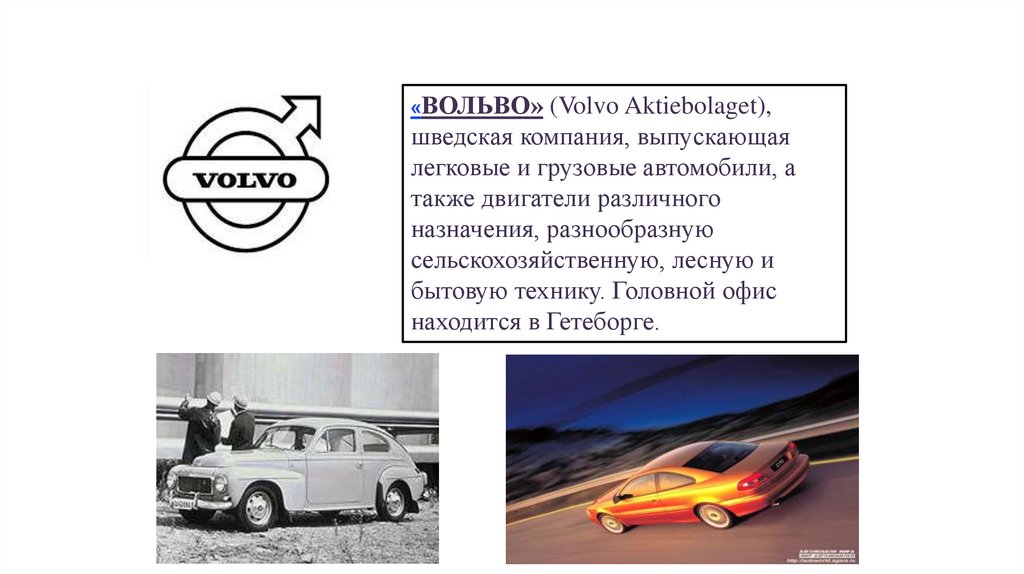 «ВОЛЬВО» (Volvo Aktiebolaget),шведская компания, выпускающая