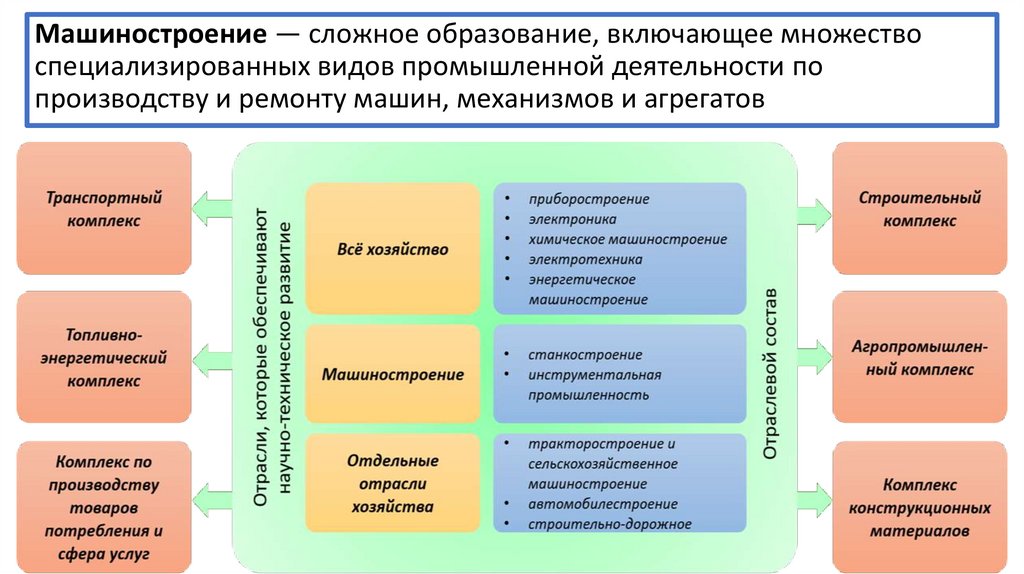 Машиностроение — сложное образование, включающее множествоспециализированных видов промышленной деятельности по