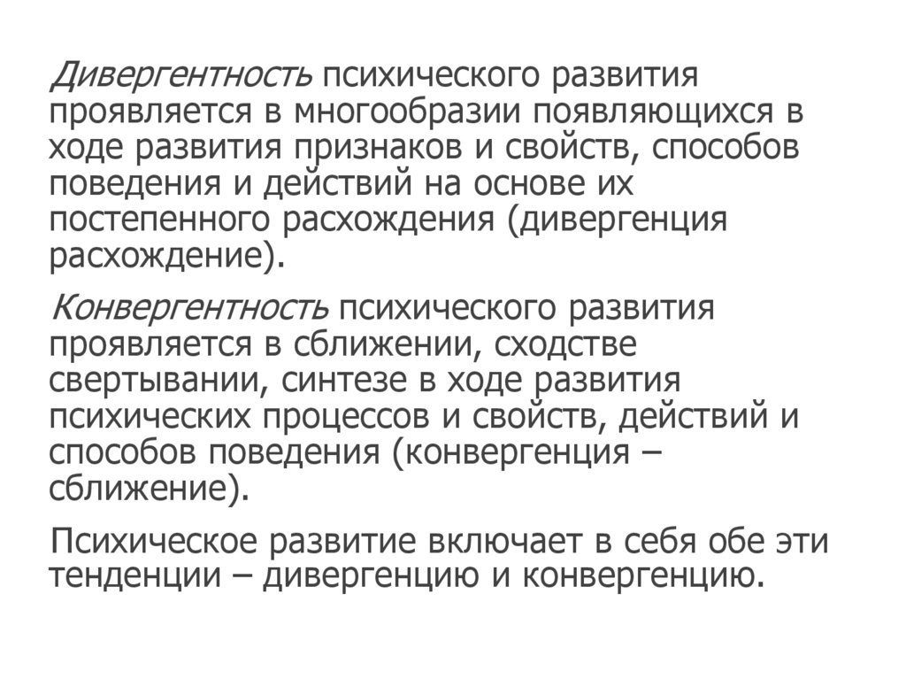 Дивергентность психического развитияпроявляется в многообразии появляющихся в