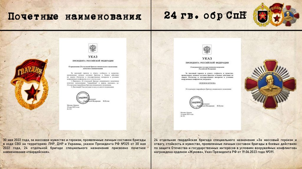2022 года, 24 отдельной бригаде специального назначения присвоено почетное