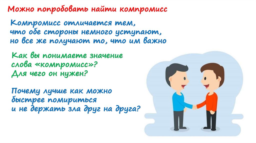 Можно попробовать найти компромиссКомпромисс отличается тем,