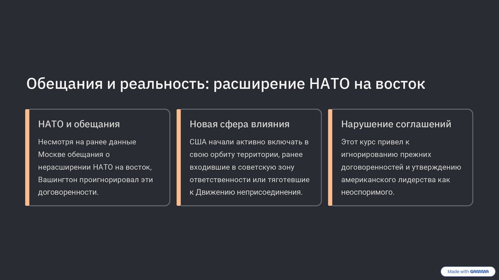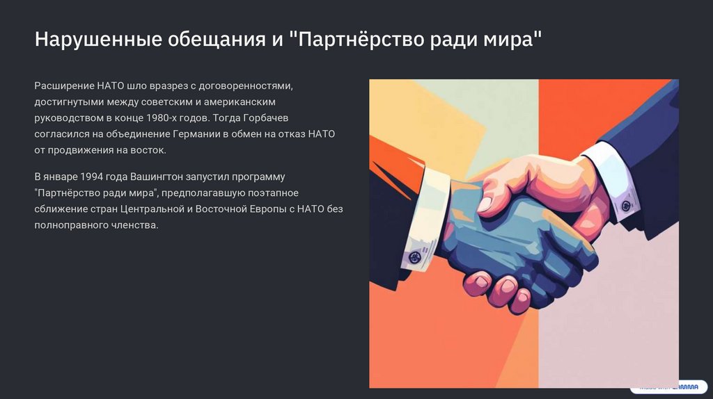 Нарушенные обещания и "Партнёрство ради мира"Расширение НАТО шло вразрез с договоренностями,
