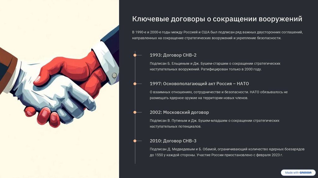 Ключевые договоры о сокращении вооруженийВ 1990-е и 2000-е годы между Россией и США был подписан ряд важных двусторонних соглашений,