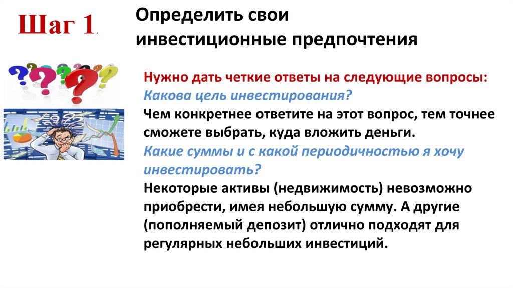 Инвестирование - это вложение денежныхсредств в некоторые активы сейчас с целью