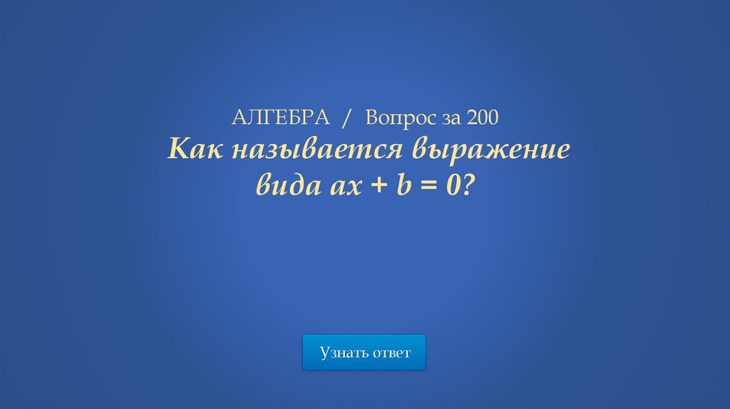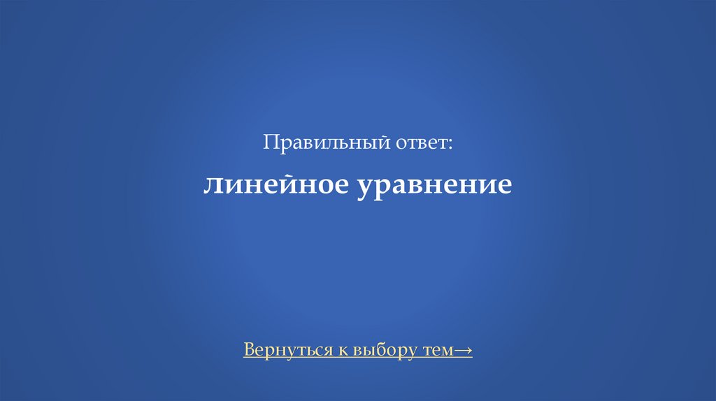 Правильный ответ:линейное уравнение