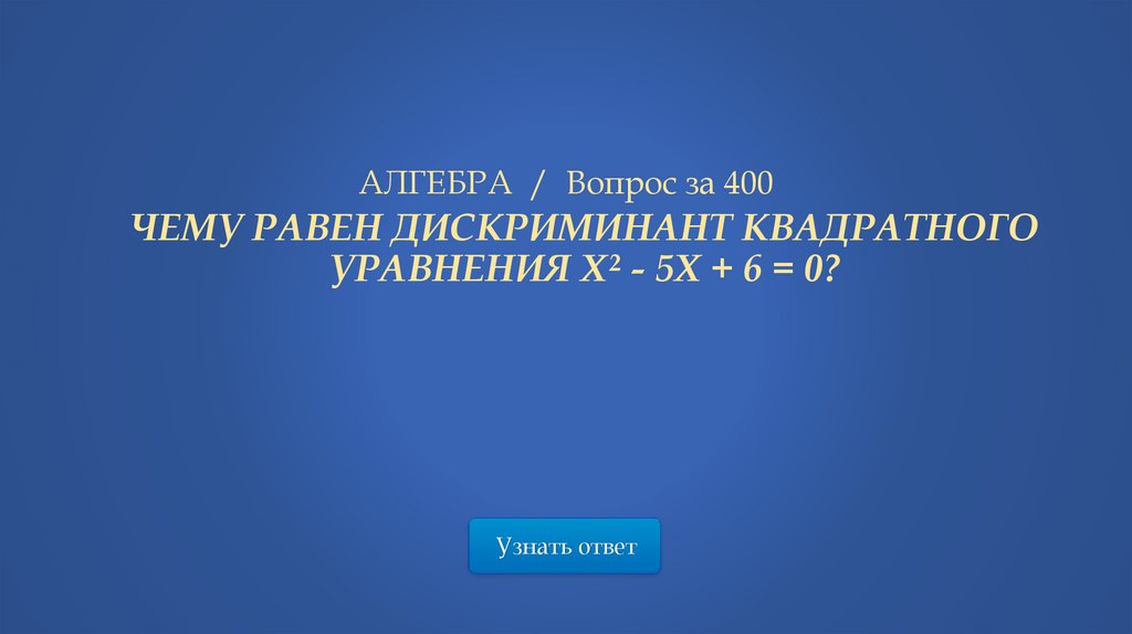АЛГЕБРА / Вопрос за 400ЧЕМУ РАВЕН ДИСКРИМИНАНТ КВАДРАТНОГО