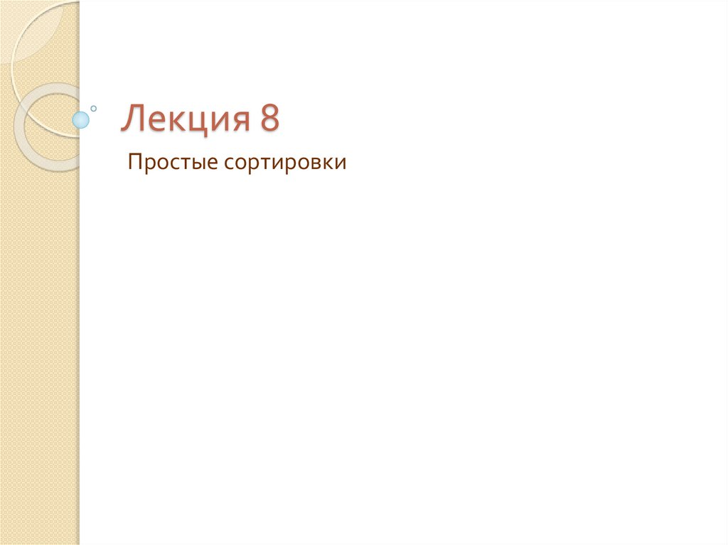Процесс сортировки включениями покажем на примерепоследовательности, состоящей из восьми ключей: