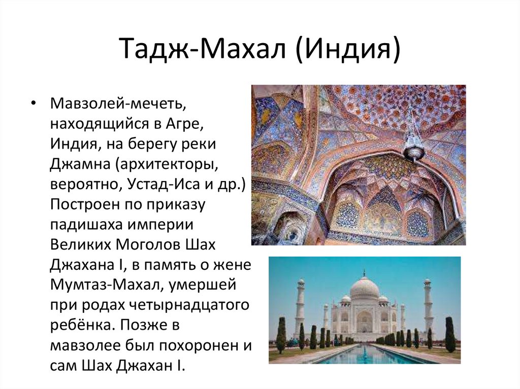 Тадж-Махал (Индия)• Мавзолей-мечеть,